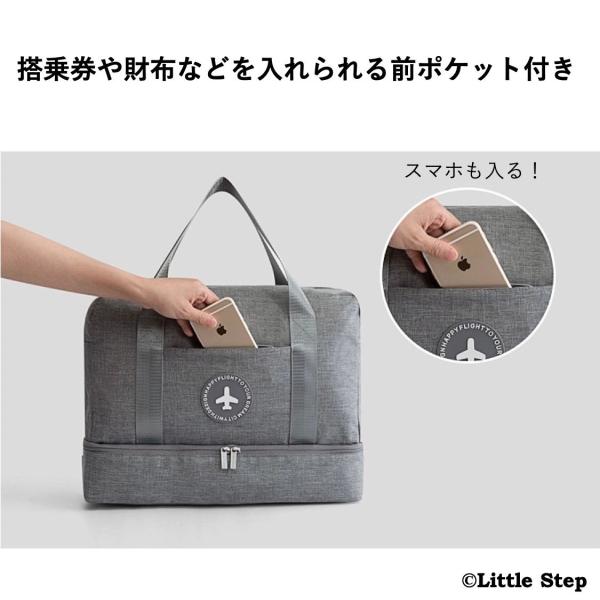 ・特徴:機内に持ち込める大容量トラベルバッグ。底にはスリッパやルームシューズを入れられるポケット付き。マチ付きで自立するのも使いやすいポイントです。