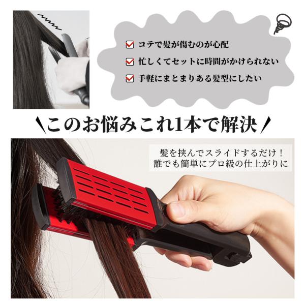 ツインブラシ 豚毛 ヘアブラシ アイロン ストレートブラシ