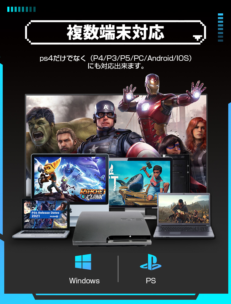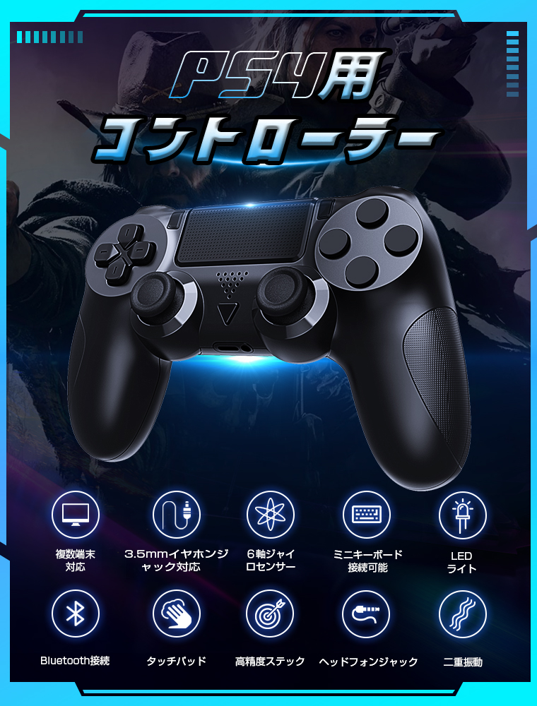 本PS4用コントローラーはPS4専用のコントローラーです。PS4だけではなく、PS4 Pro/PS3/PS3 Pro/Slim PC(Windows7/8/10)にも対応できます。USB端子に接続するだけで、有線コントローラーになれ手軽に使い始められます。 最新PS4システムを対応します。ご注意:FPS、TPSとのゲームにはあまり向いていません。予めご了承ください。コントローラー背面にはリセットキーがあり押すと、PS4にペアリングや充電できない、ボタンの反応が悪い、スティックが勝手に動くなどの問題が解決します。