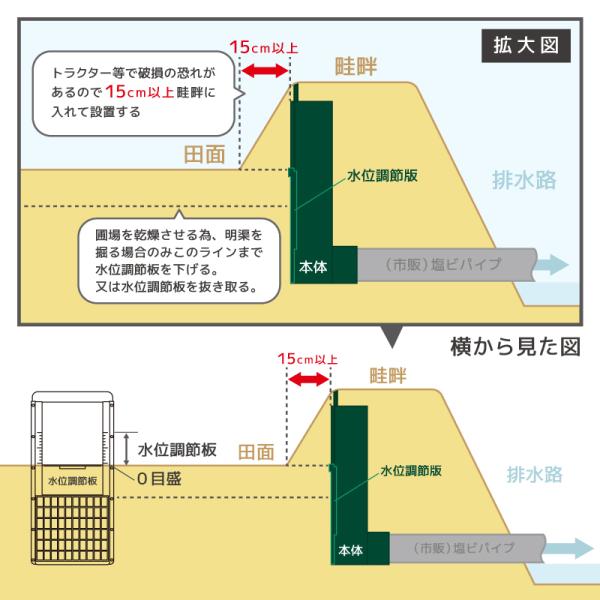 農業 田んぼ 米 排水 取水 稲作 田植え 用水路 水量調節 水量調整 暗渠 排水口 排水閘 100型