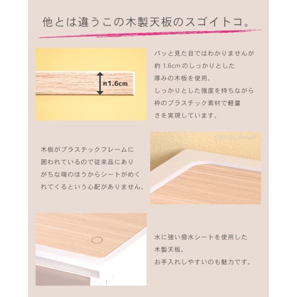 【材質】天板:パーティクルボード+合成樹脂化粧繊維板、本体:ポリプロピレン、滑り止め:エラストマー