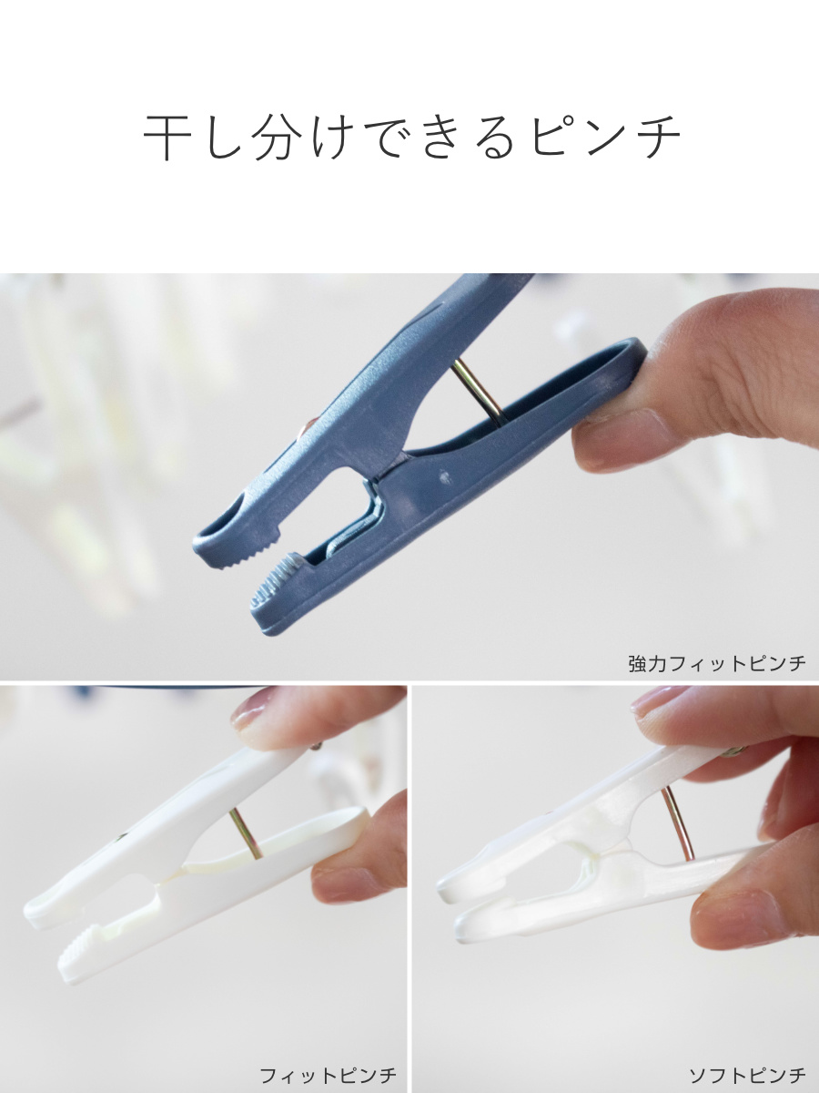 ●高い物干し竿にもラクに干すことができる背伸びグリップ付きです。