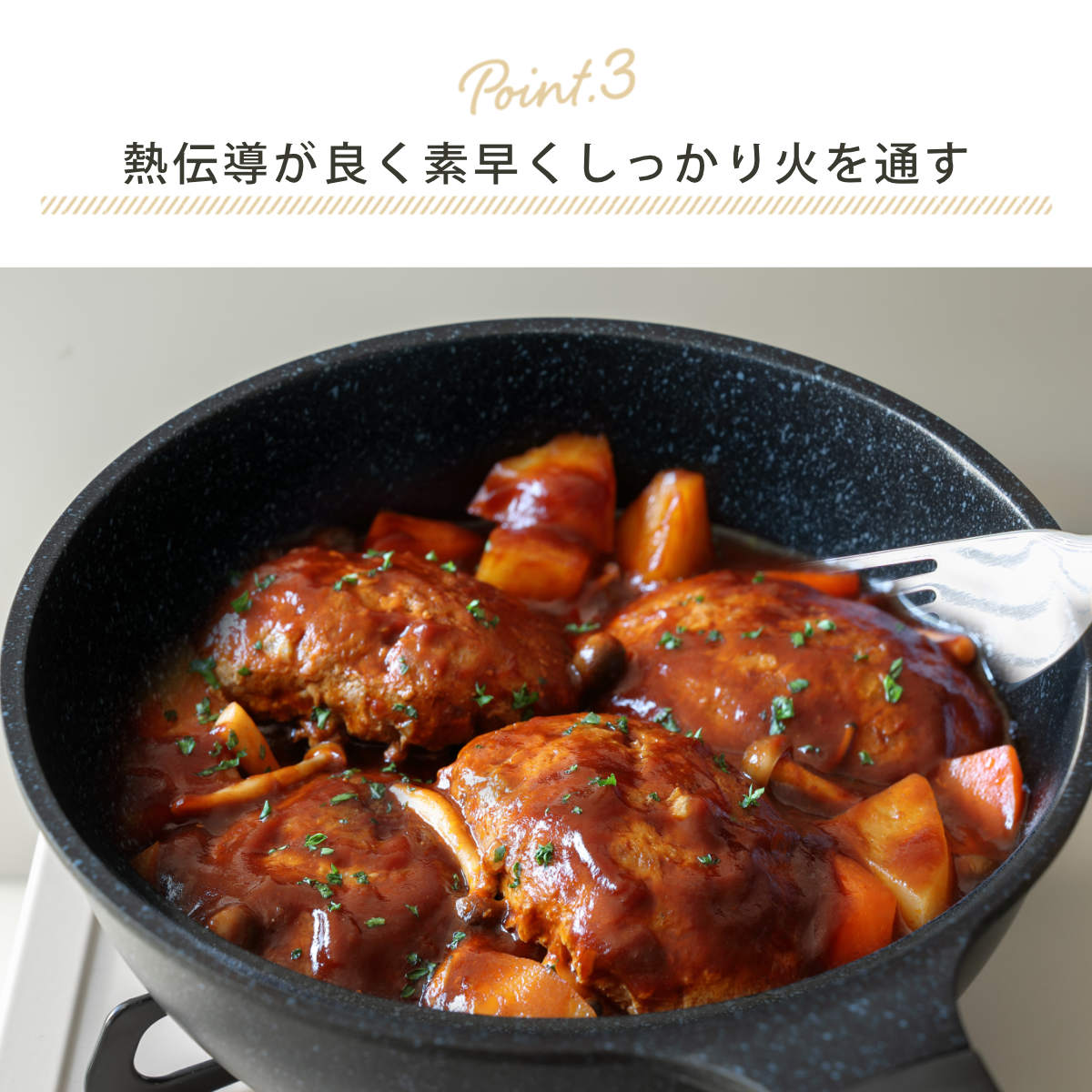 ●熱伝導がいいから素早くしっかり火を通します。