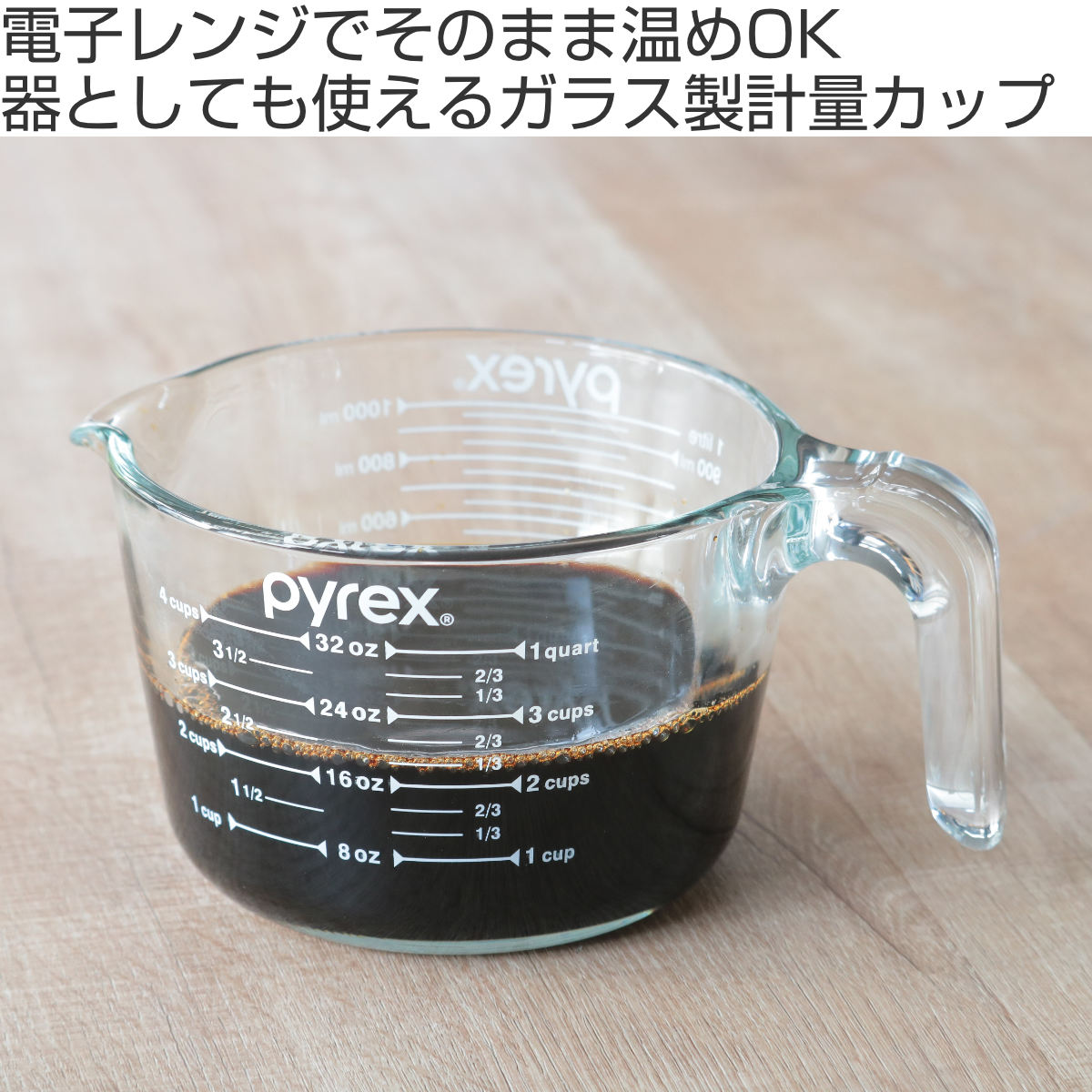 PYREX 計量カップ 1L 耐熱ガラス 取っ手付き メジャーカップ ( パイレックス 耐熱 ガラス 1 リットル 計量 カップ 目盛 食洗機 電子レンジ オーブン 対応 )