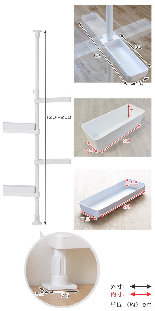 サイズ/約幅9×奥行30×高さ120〜200cm