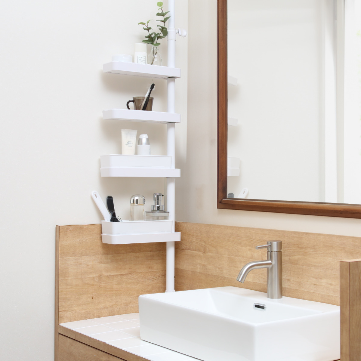 特典付き 突っ張り スリムラック 洗面台上 高さ120〜200cm ( 突っ張りラック スリム ラック 収納 突っ張り棒 つっぱり ホワイト すき間収納 隙間 つっぱり棚 )