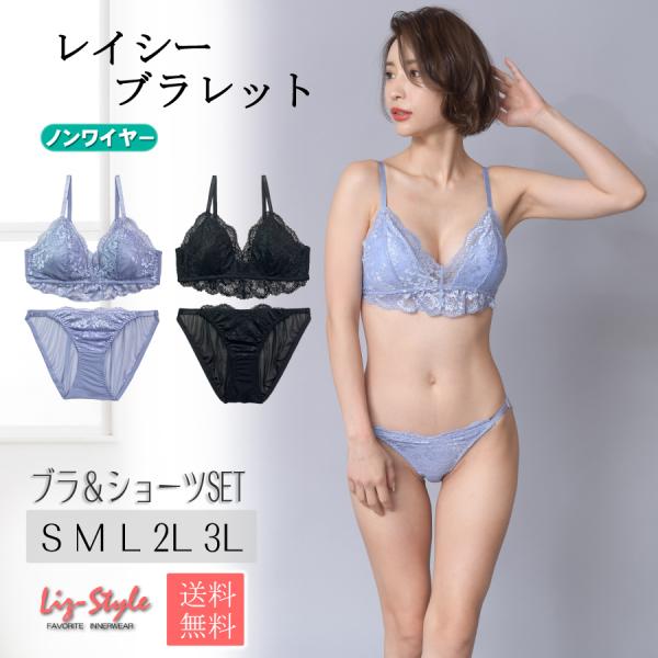 ブラジャー ブラレット セット ノンワイヤー 三角ブラ ショーツ セット ブラセット 下着女性 レース Liz-Style