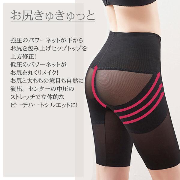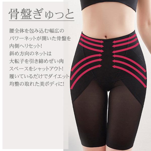 強力パワーネットの二重構造設計!強い着圧感で効果的にヒップを持ち上げ、下腹を引き締める。骨盤回りもぎゅぎゅっとサポート。