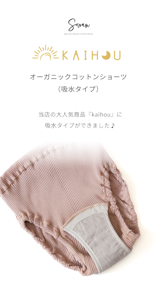 kaihou(カイホウ) オーガニックコットン 吸水 ショーツ 生理用 サニタリーショーツ 尿もれ 生理用ショーツ おりもの 可愛い かわいい 綿 締め付けない 深履き