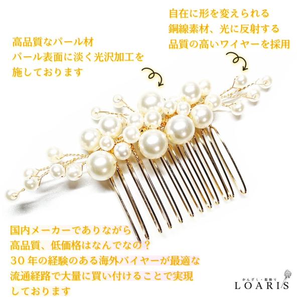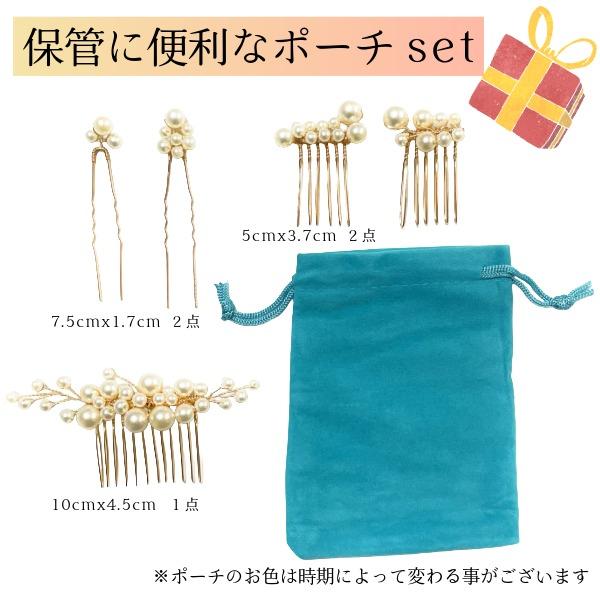 パールピン ヘアコーム セット ゴールド ウェディング ブライダル 髪飾り 着物 留袖 5点セット 収納ポーチ付き