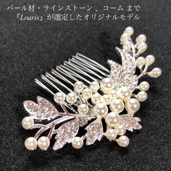 パールとラインストーンを1つ1つ丁寧に嵌め込んだヘアコーム。