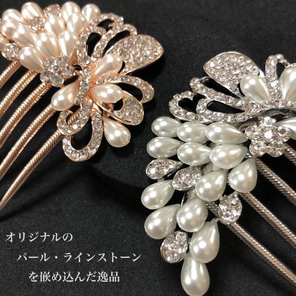 パールとラインストーンを1つ1つ丁寧に嵌め込んだヘアコーム。
