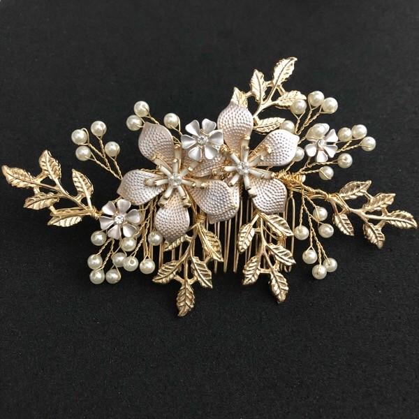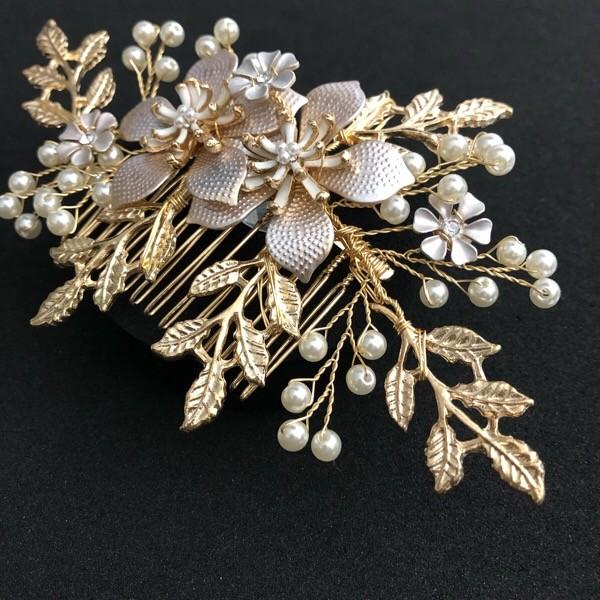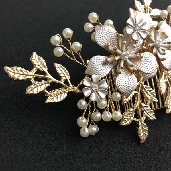 様々のモチーフが豪華に織り交ぜられたフラワーデザインのビジューコーム