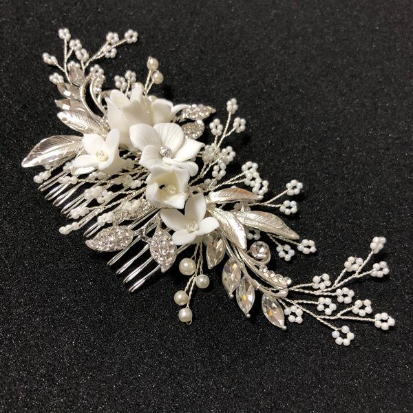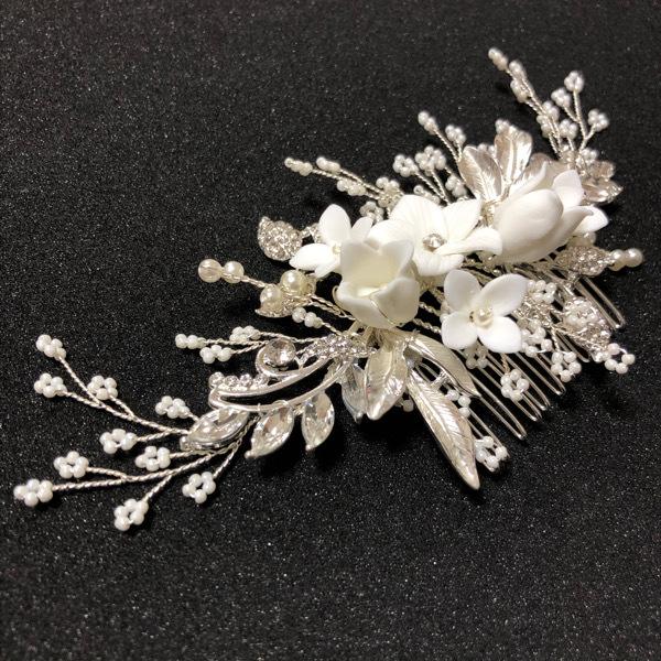 真っ白なフラワービジューを中央に配した気品の高いお品です。