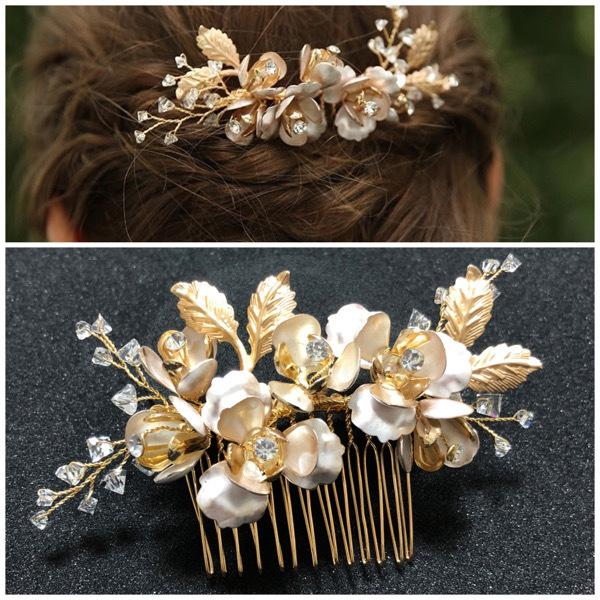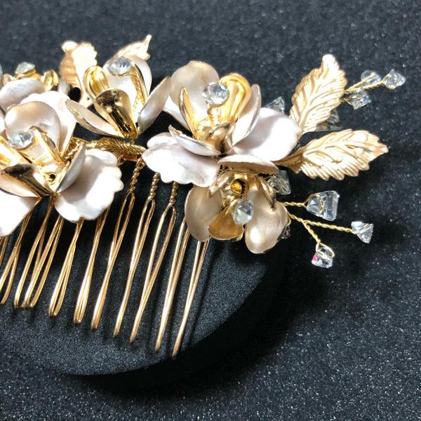 ゴールドカラーのクラッシックなハンドメイドヘッドドレス。
