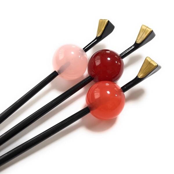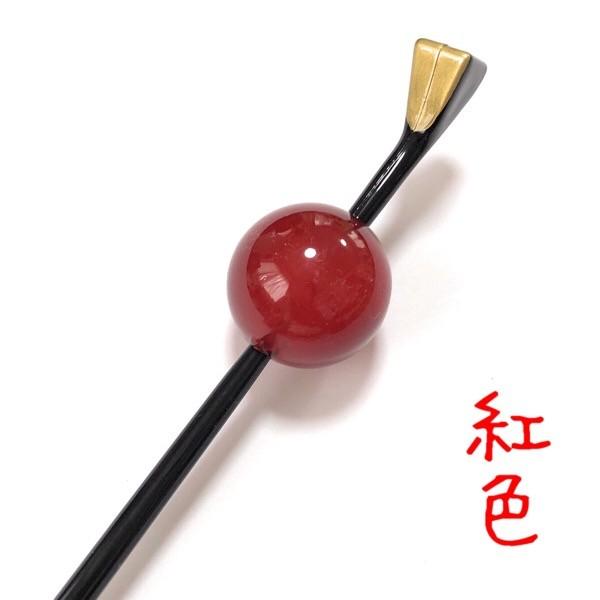 和装・大玉かんざし紅色の和装・着物に合わせやすいシンプルなデザインです。又、光沢のある高級感ある仕上がりです。紅赤・桃色・桜色の3色展開■サイズ 全長 約19 cm 玉 約2.5cm