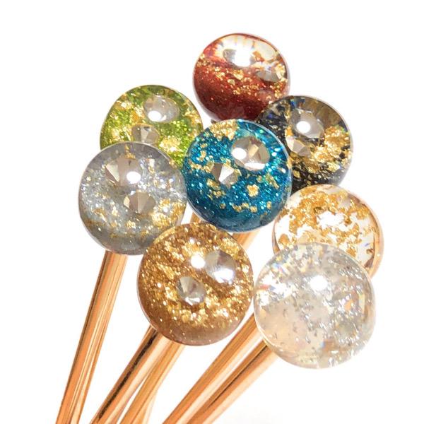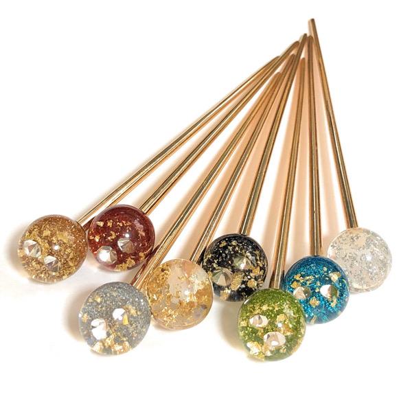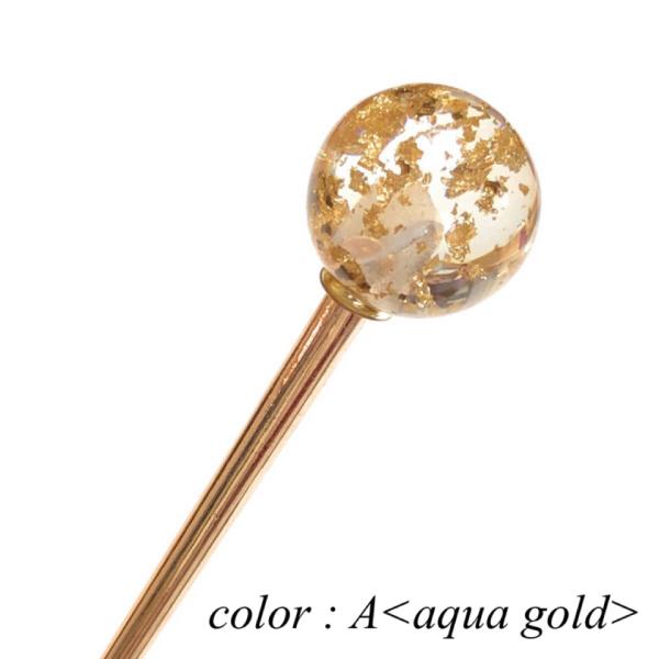 金ラメが浮かんだアクア玉かんざし上品なゴールドな1本挿しベース8種のカラーから選べる素材 : 亜鉛合金 アクリル樹脂 サイズ : 全長 148mm 玉サイズ 20mm