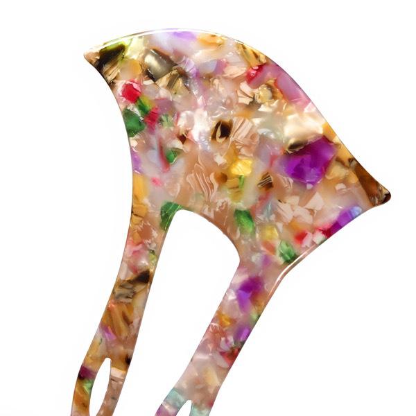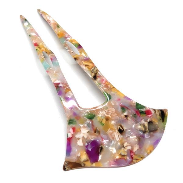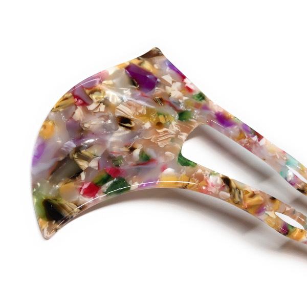 べっ甲風マルチカラーのバチ型かんざし