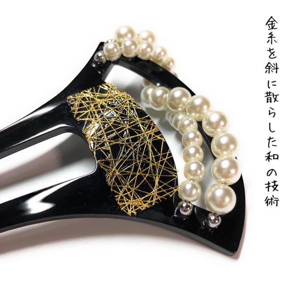 かんざし バチ型 金糸 髪飾り 和装髪飾り パール 2本挿し 和装 留袖 着物 扇型