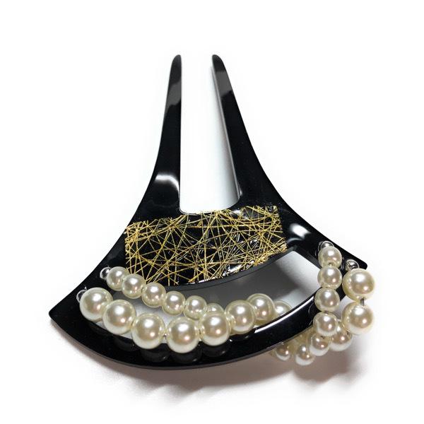 商品説明 パール材を流線に巻いたバチ型かんざし