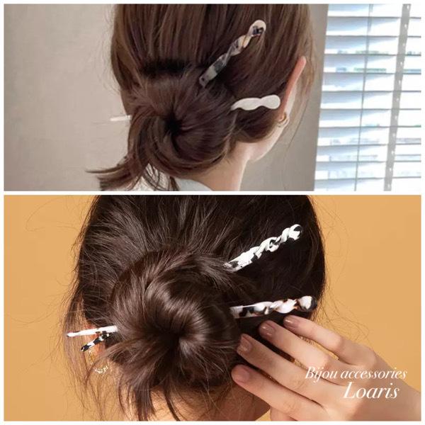 かんざし 二本挿し 簪 バチ型 髪飾り べっ甲風 和装 着物 留袖 黒 色