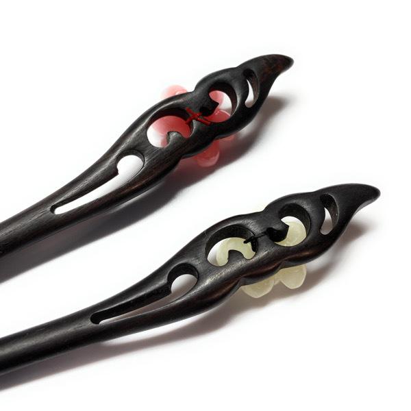 透かし細工の天然木ヘアスティックをベースに仕上げた上品なお品です