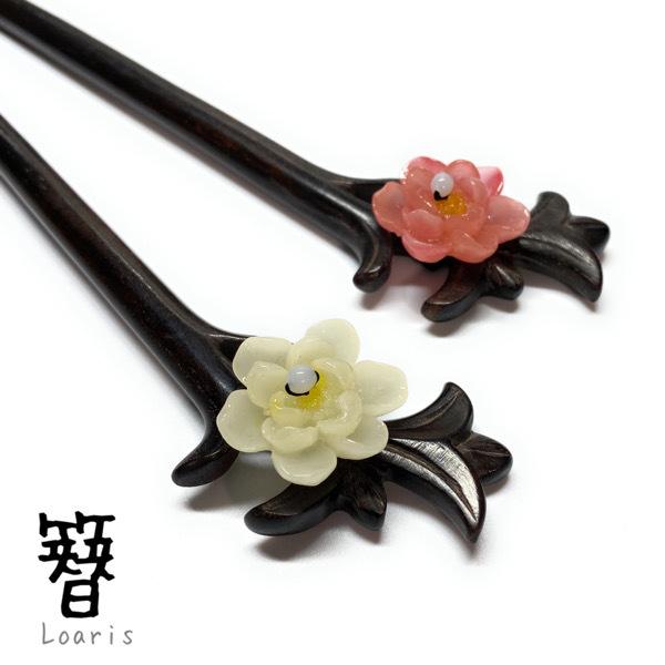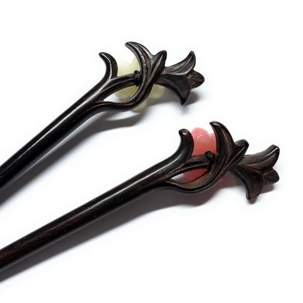 透かし細工の天然木ヘアスティックをベースに仕上げた上品なお品です