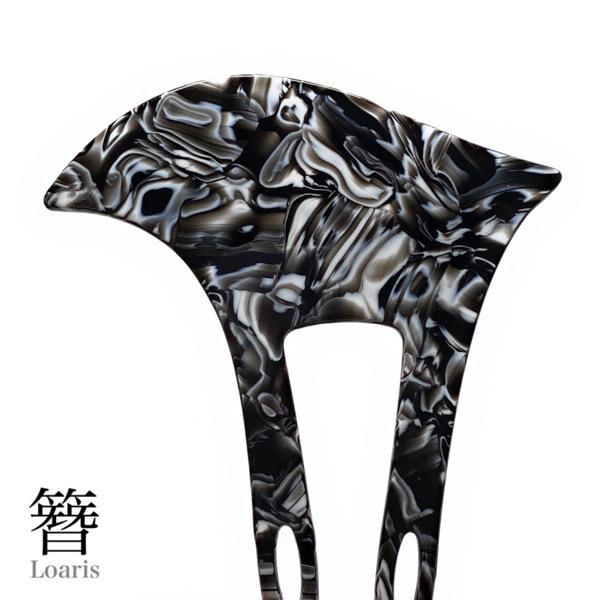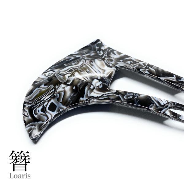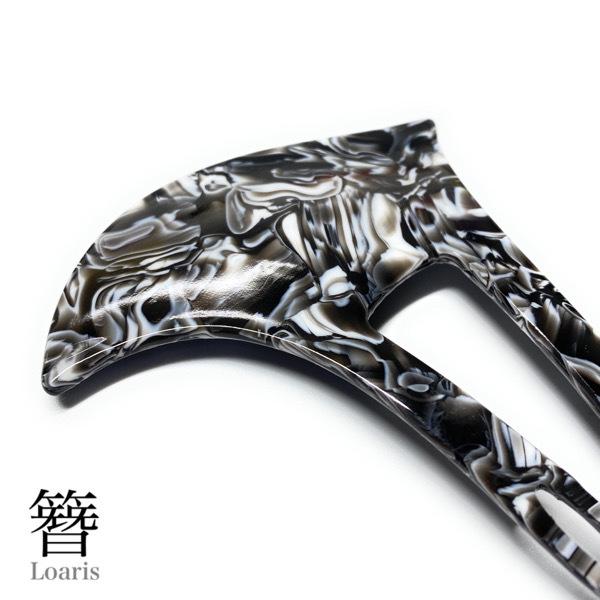 かんざし バチ型 ホワイトマーブル 2本差し