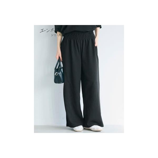 コカ coca 【速乾/しわになりにくい】エンボスワイドパンツ(Black)
