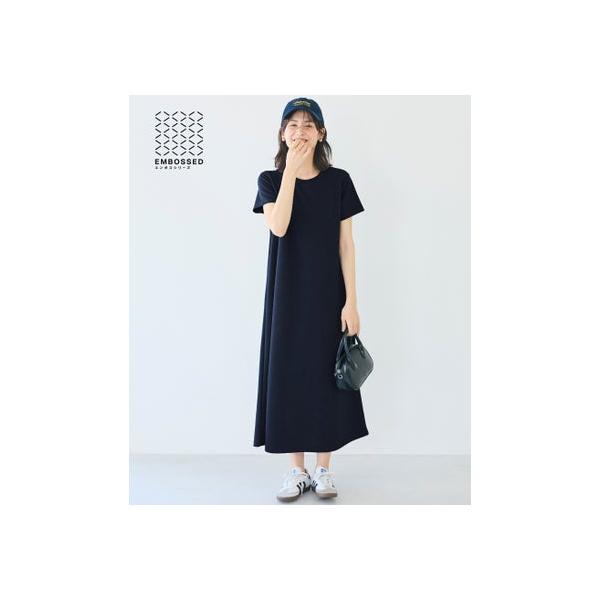 コカ coca エンボス半袖マキシワンピース (Navy)