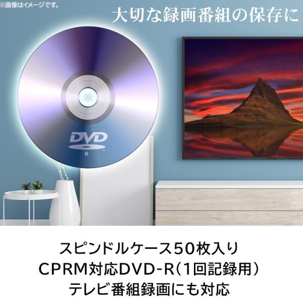 CPRM対応1回録画用スピンドルケース50枚入り DVD-R です。DVD-Rは記録型DVDの中では再生可能なDVDプレーヤーが最も多く、配布用メディアとしてもおすすめです。