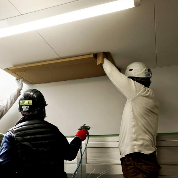 ・なるべく換気等を行い、空気の対流が多くなる環境下で施工するようにしてください。