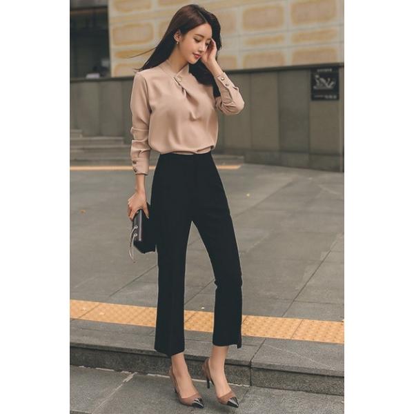 即納 スーツ フォーマル パンツスーツ 春 パンツ プチプラ 結婚式 入学式 卒業式 卒園式 母親 服装 セットアップ OL 着痩せ 長袖 無地 オフィス シフォン