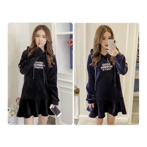 ワンピース ショート ミニ丈 長袖 パーカーワンピース パーカー ロングパーカー フード付き 英文字 フレア 膝上丈 大きいサイズ 韓国ファッション 秋 冬 即納