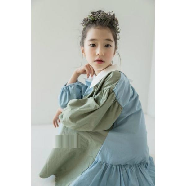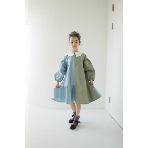 即納 バイカラー ワンピース 子ども服 フォーマル ドレス レトロ キッズ 入学式 入園式 卒業式 卒園式 服装 ボリューム袖 シフォン袖 おしゃれ かわいい 個性的