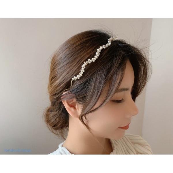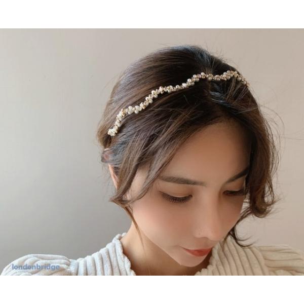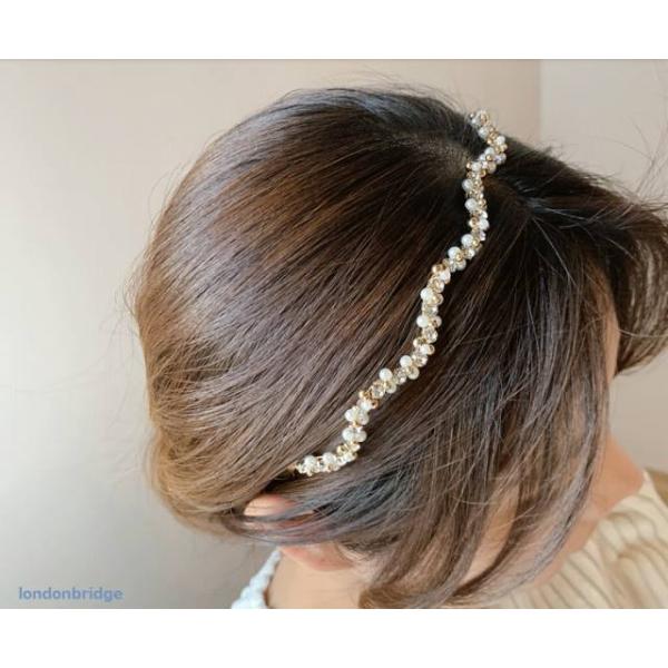 ヘアスタイルのアクセントに☆ウエーブ パール カチューシャ
