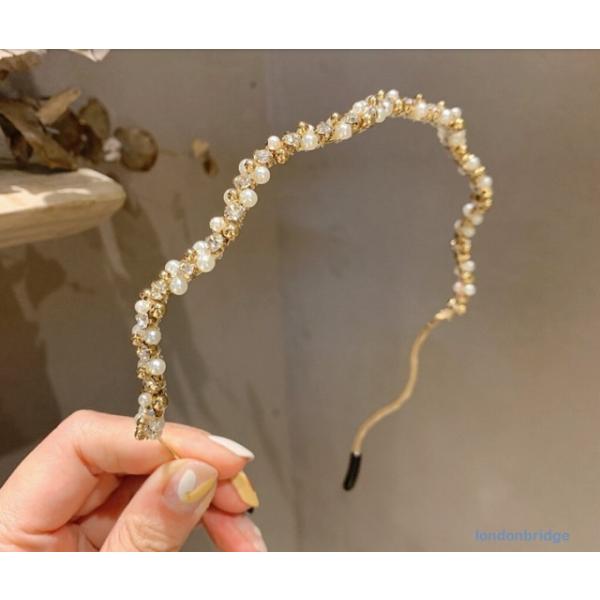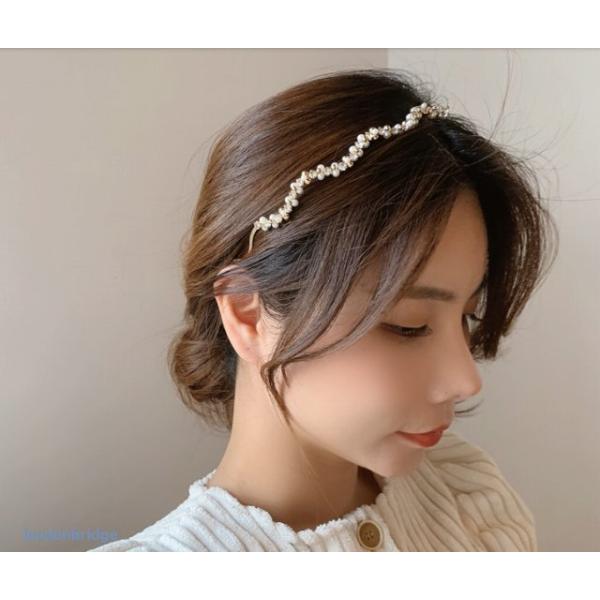 【ヘアスタイルのアクセントに☆ウエーブ パール カチューシャ】ヘアアクセサリー カチューシャ レディース ヘアバンド ラインストーン パール 華やか きれいめ エレガント ゴールド 髪飾り 結婚式 普段着 入園入学 卒園卒業 送料無料