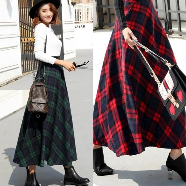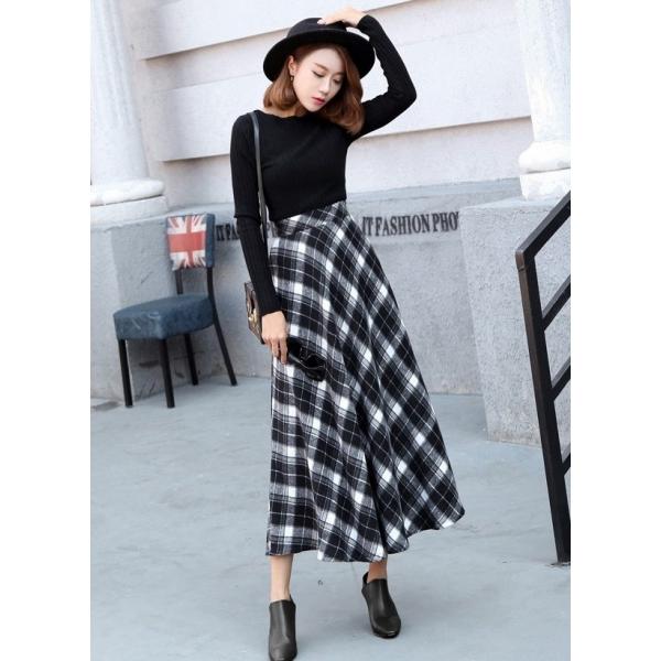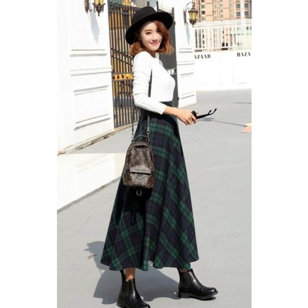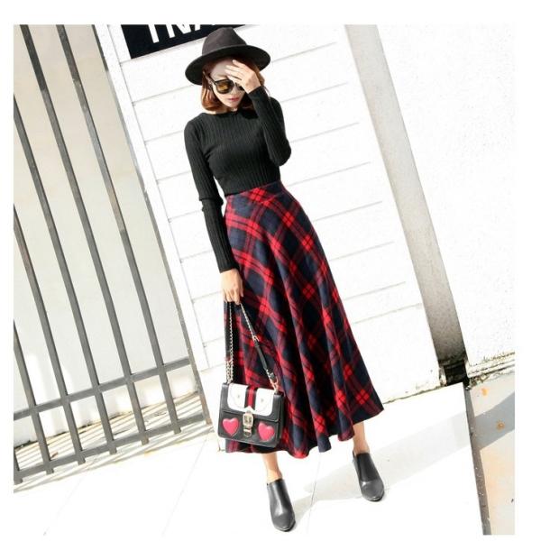 スカート ロング丈スカート マキシ丈 フレアスカート タータンチェック きれいめ ロング ウエストゴム お出かけ デート 綺麗 カジュアル クリスマス おしゃれ