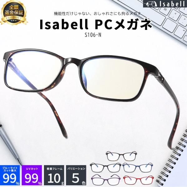 伊達眼鏡 / 伊達めがね / 赤外線 / 目保護 / 男女兼用 / ユニセックス / 眼精疲労 / プレゼント / 人気 / オススメ / おすすめ / おしゃれ / 送料無料 / 透明 / 紫外線カット / UVカット /PC作業 Isabell ブルーカット パソコンメガネ スクエア ウエリントン ブラック 伊達眼鏡 / 伊達めがね / 伊達メガネ / UVカット 爆買