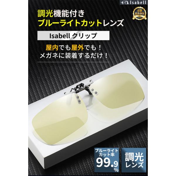 ブルーライトカット メガネ pcメガネ サングラス メガネの上から 眼鏡の上から 調光 クリップ クリップ式 クリップオン レンズ uvカット 軽量 Isabell