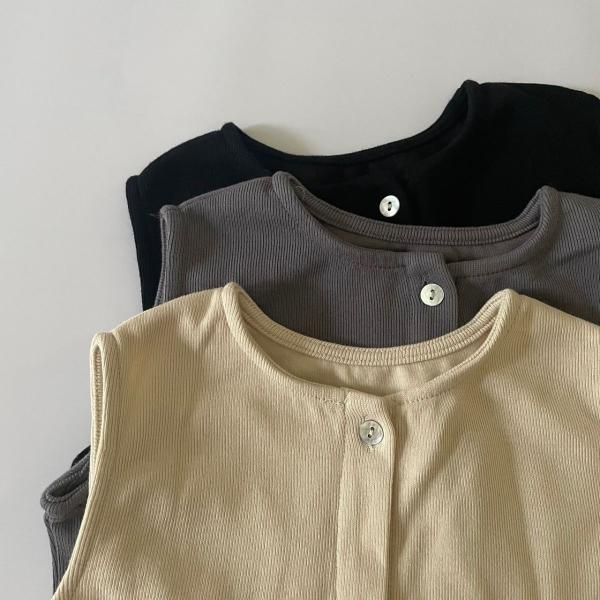 ベビー キッズ ベスト shell button vest コットン リブ 女の子 男の子 ユニセックス シェルボタン 可愛い 60cm 66cm 70cm 73cm 80cm 90cm 100cm 輸入 子供服