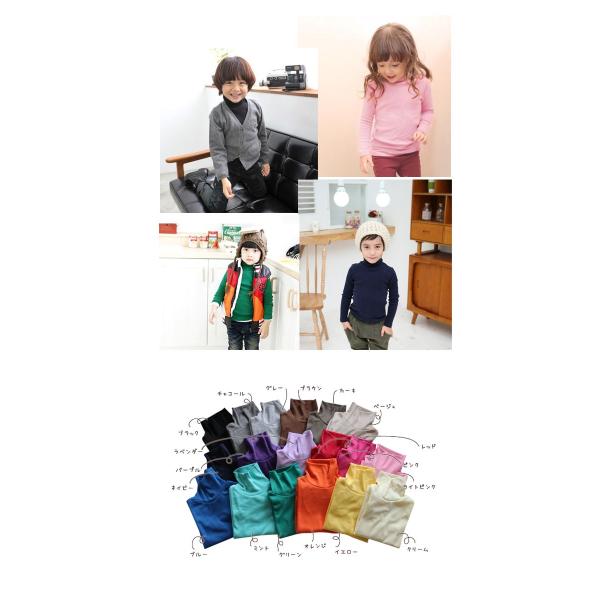 キッズ タートルネック 長袖 Tシャツ 19色 90cm-140cm 送料無料
