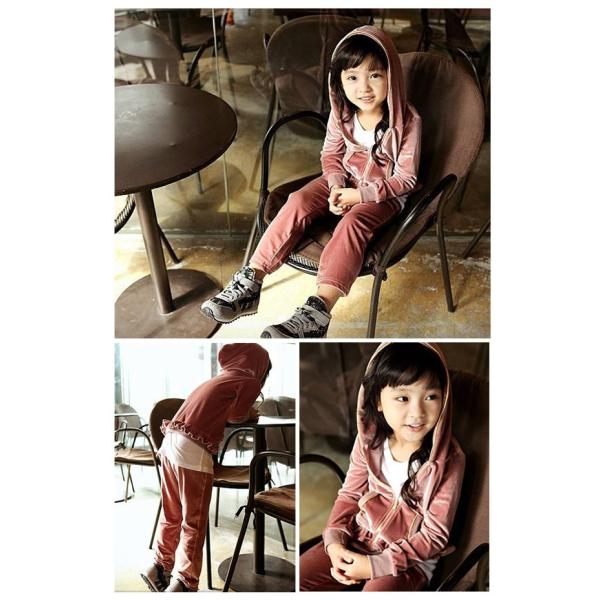送料無料 キッズ ベロア 裾フリル 長袖パーカー&パンツ上下セット