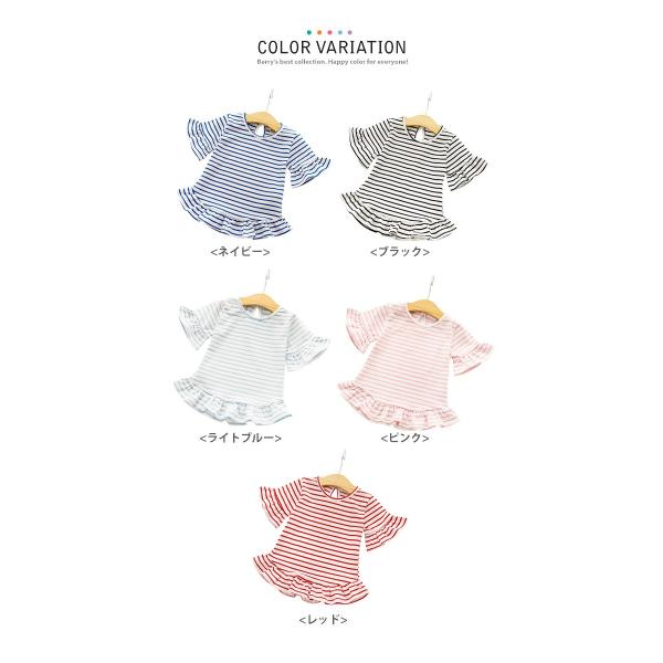 ゆうパケット送料無料 袖裾フリルボーダーTシャツ チュニック
