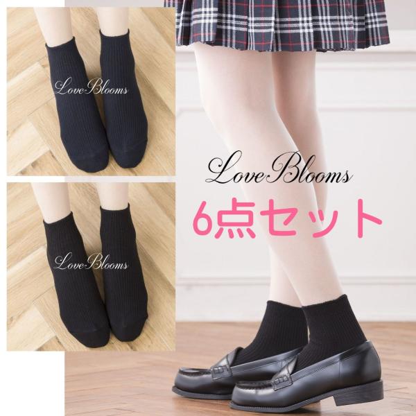 スクールソックス 10cm丈 黒 紺 女子 お色の組み合わせを選べる 6点セット 無地 リブ ショート丈 日本製 レディース 靴下