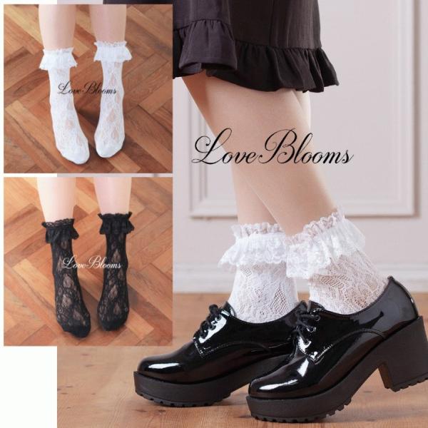 ニーハイソックス シアー 黒 白 ブラック ホワイト フリル レース リボン ストッキング レディース 地雷系 靴下