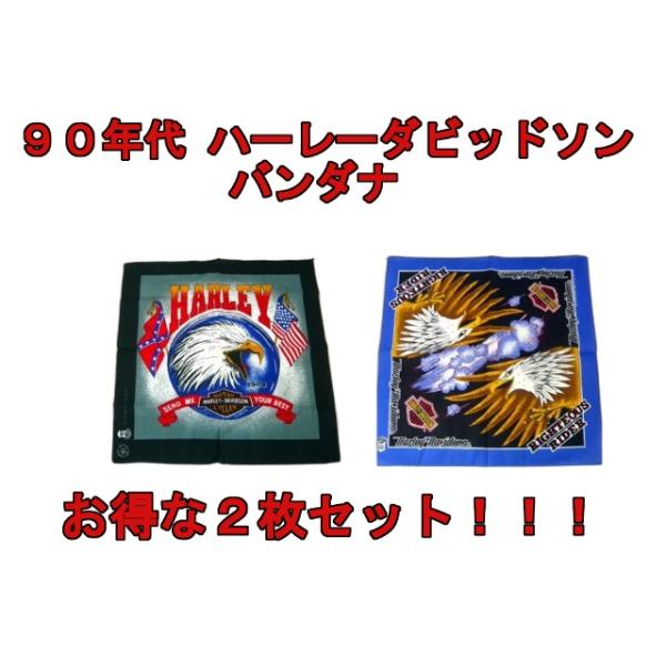 送料無料 お得な2枚セット ハーレーダヴィットソン バンダナ MADE IN U.S.A アメリカ製 ライセンス品 90年代 大判ハンカチ 新品 ハーレーダビッドソン