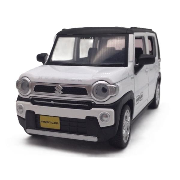 ミニカー 1/22 スズキ ハスラー 白 ヘッドライト&テールライト点灯 エンジン音&クラクション 新品 プルバック 軽自動車 ハイブリッド 光る鳴る