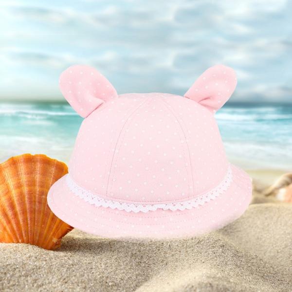 女の子 ベビーハット 赤ちゃん 帽子 可愛い耳飾り あご紐付き