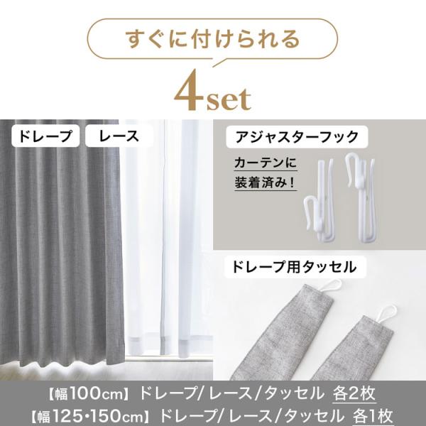 カーテン 4枚セット 遮光 1級 2枚セット レースカーテン 遮光カーテン 遮音 タッセル おしゃれ 1級遮光カーテン 遮像 完全遮光 保温 防音 UVカット